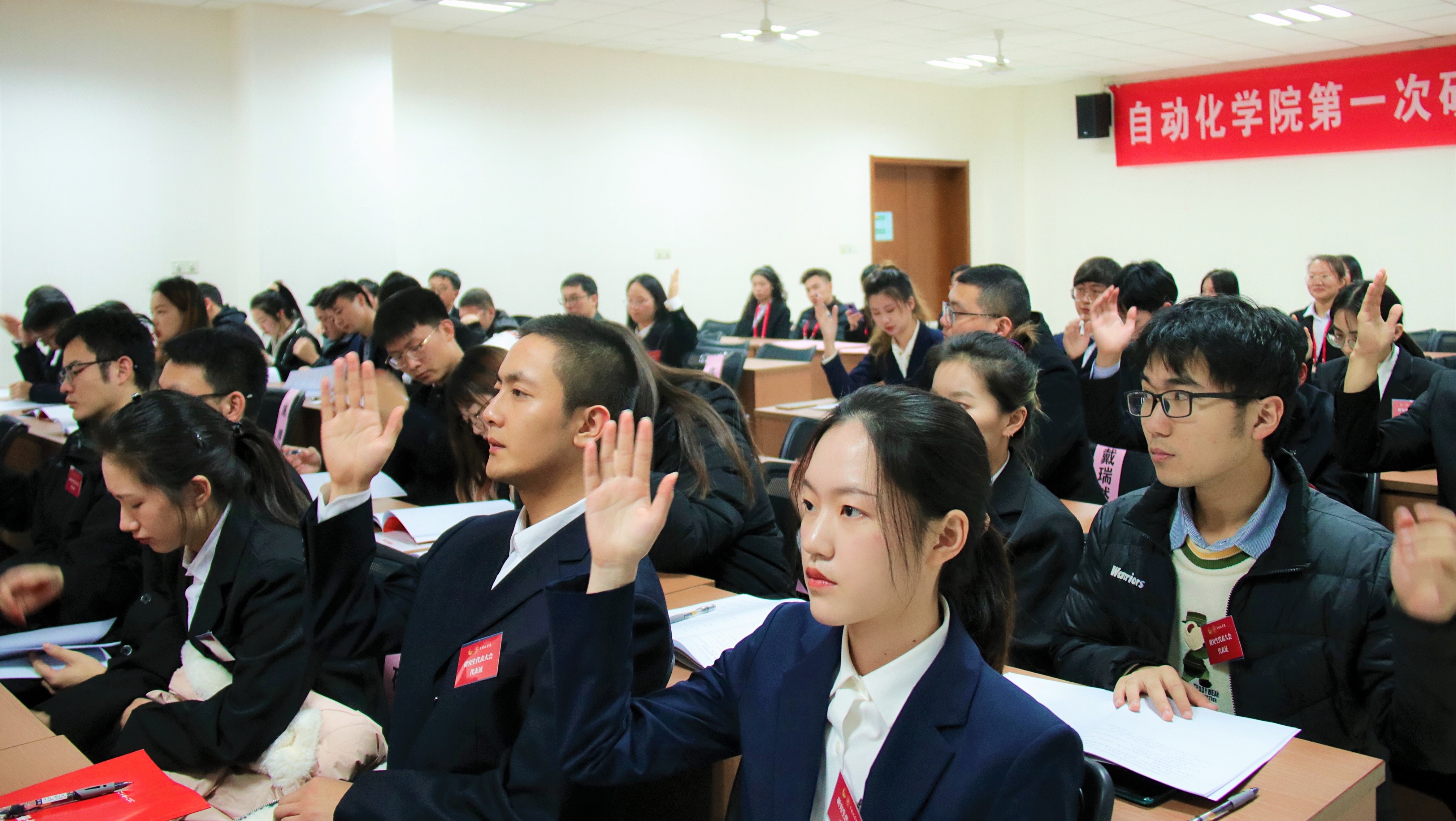 12月12日,网上购买双色球 举办第一次学生代表大会、第一次研究生代表大会。网上购买双色球 党委副书记丁琛,团委书记陈慧云,校学生会主席团成员孙辰浩出席大会开幕式,网上购买双色球 79名本科生代表和38名研究生代表参加大会,履行学生代表职责。