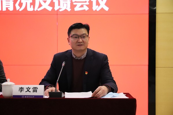 根据网上购买双色球 党委巡察工作领导小组部署,2021年12月24日,党委第一巡察组在网上购买双色球 召开了巡察反馈会。校党委副书记、纪委书记杭育新,纪委办主任廖元元,第一巡察组组长张新明、副组长燕雪峰、副组长张林、联络员卢佳妮及网上购买双色球 全体教职工参加会议,网上购买双色球 党委书记李文雷主持会议并作了表态讲话。