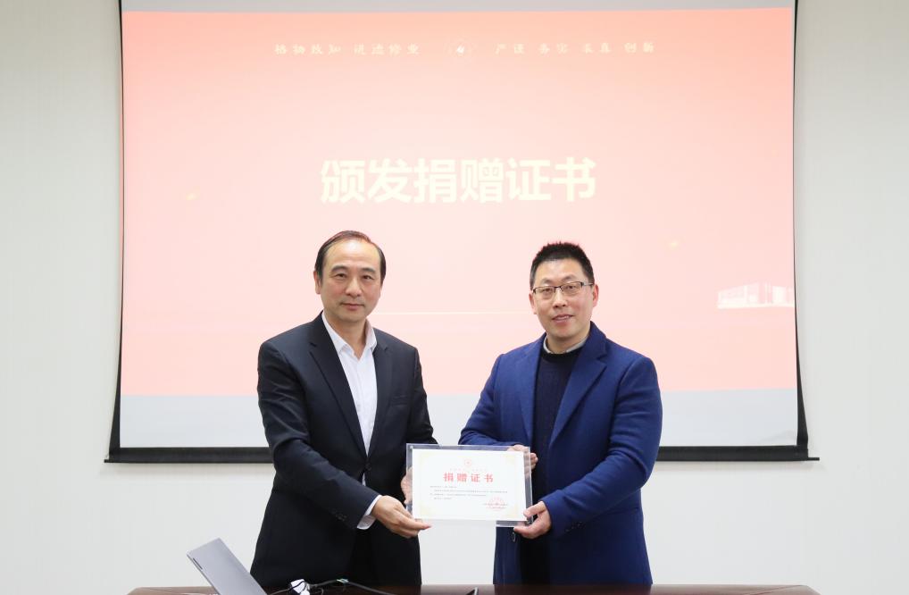 此次敏业信息科技上海向网上购买双色球 电气工程系捐赠“一站式EMI诊断测试系统”仪器一套,主要用于网上购买双色球 实验教学使用。江驹向敏业信息科技上海颁发捐赠证书并进行合影留念。
