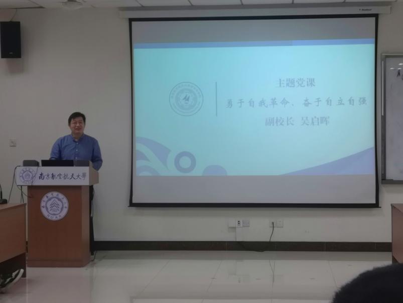吴启晖副校长对104团支部过去一年取得的进步表示赞扬,并为同学们讲授了《勇于自我革命,奋于自立自强》的主题党课。面对同学们提出“内卷现象”的问题,吴校长发表了自己的看法。他认为,步入新时代,躺平只是伪命题,自我革命,在失败中成长,不断学习,取长补短才是更多年轻人的选择。他对支部成员提出殷切期望,面对国内部分领域的“卡脖子、卡嗓子”现状,希望青年一代更要自立自强,培养浓厚兴趣,树立更高目标。希望支部成员能够再接再厉,以更加优异的成绩,真正做到“聚是一团火,散是满天星”!