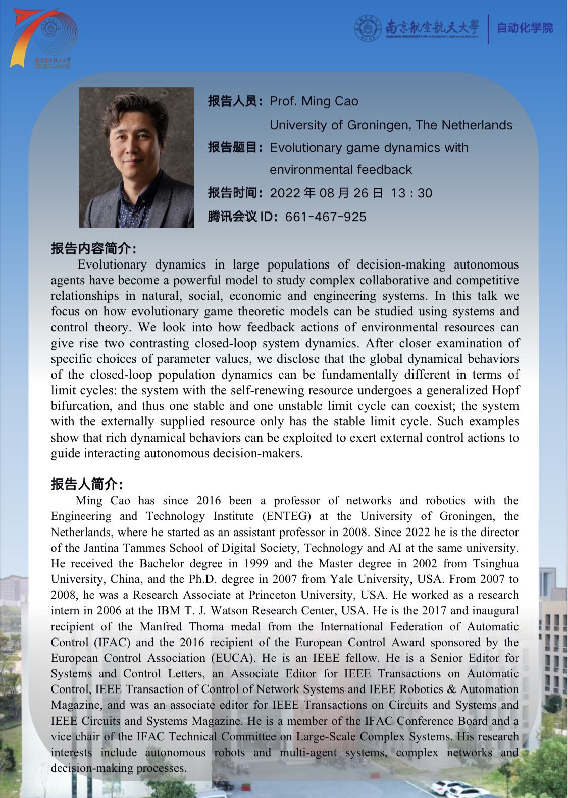 【学术报告】Evolutionary game dynamics with environmental feedback