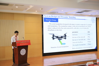 随后,吕品从无人系统激光雷达/视觉定位与构图、可见光/红外传感器联合目标识别、自主路径规划等方面做题为《Key technologies for intelligent navigation and sensing of unmanned systems》报告,温尊旺同学从系统设计和动力学模型、飞行机械臂控制器设计等方面做题为《Non-singular terminal sliding mode compliance control of aerial manipulator based on disturbance observer》报告分享。
