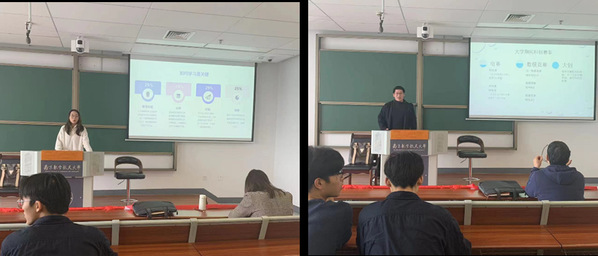 接着,大四优秀学生代表陈伯凯、傅雨涵同学就本科学习生涯规划、科创竞赛、考研保研等具体内容向学弟学妹做了精彩的经验分享,鼓励同学们尽早寻找自身兴趣、规划未来方向;大三优秀学生代表周颖、张鑫同学分享了自己在课程学习、数模竞赛、大创项目等方面的成功经验和心得体会,鼓励同学们学好专业课程、积极参与科创项目、丰富大学生活。现场学生反响热烈,纷纷与学长学姐互留联系方式,以便私下交流。