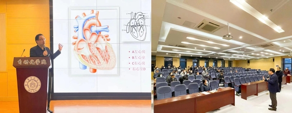 许迪教授长期从事心脑血管的临床医学工作,有着丰富的临床实践经验,他的《科普漫谈心脏病》报告诙谐幽默,深入浅出地讲述了心脏的结构、心脏病的种类、危险因素和控制方法,详细讲解了冠心病、高血压、心律失常等病症的临床表现和症状特点,建议大家不要讳疾忌医,关注自身的健康,要科学治病有效就医。在现场互动问答环节对参会导师提出的多个问题逐一给予了耐心细致的解答。
