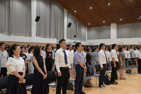 9月10日,网上购买双色球 2023级本科生开学典礼在天目湖校区风雨操场隆重举行。网上购买双色球 全体领导、院长助理、网上购买双色球 办公室、各系主任、专业负责人、23级本科生班主任、辅导员和全体本科新生参加本次典礼。典礼由网上购买双色球 党委副书记丁琛主持。