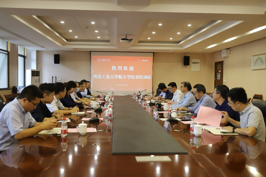 9月27日,西北工业大学航天网上购买双色球 执行院长岳晓奎、党委书记黄越、副院长宁昕一行八人来院调研交流。网上购买双色球 党委书记李文雷、院长陈谋带领网上购买双色球 领导班子成员参加交流会。会议由网上购买双色球 党委副书记丁琛主持。