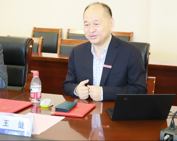 王健回顾了在南航的求学时光,表示此次受聘为母校兼职教授,既是荣誉,更是责任。他表示,自己在职业生涯和个人发展中始终践行母校赋予的“三航”底色和“红色基因”烙印,做好“蓝色梦想”的传承。此次再次回到母校激动万分,借助此次受聘,定将进一步加深合作,继续瞄准大方向、开拓新领域、联建大平台,在科研合作、人才培养、产业项目等方面取得新成绩,实现共赢发展。