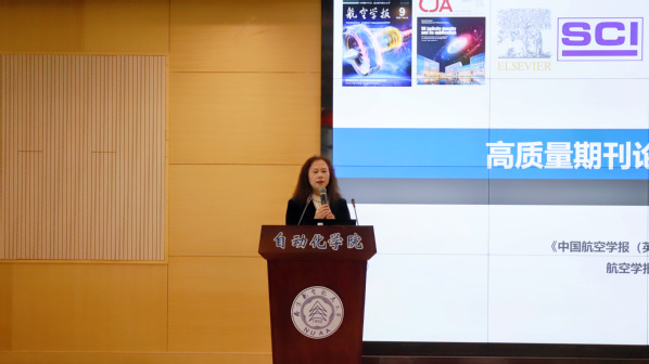 来院期间,航空学报杂志社社长蔡斐做了题为《高质量期刊论文写作与投稿》的报告,报告主要从科研选题、论文写作规范化、审稿常见问题辨析、期刊投稿四方面展开。她指出论文写作最基本的规范是踏踏实实做学问,她从文章类型、行文结构两方面简要介绍了论文写作规范并结合日常编辑工作中的稿件实例辨析了论文审稿中的常见问题。报告现场气氛热烈,同学们积极向专家提问,大家纷纷表示本次报告干货多,适用指导性强,受益颇多。
