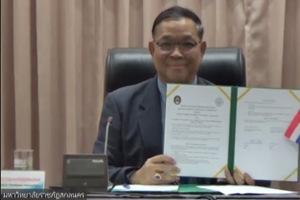 1月4日上午,网上购买双色球 与泰国沙功那空皇家大学举行谅解备忘录线上签约仪式。沙功那空皇家大网上购买双色球 长Chakrit Chanchitpreecha、副校长Tosawat Seetawan、Pornthep Steannoppakao等19位代表,网上购买双色球 校长姜斌、副校长黄志球、国际合作处副处长张国权、网上购买双色球 副院长陆宁云等相关负责同志参加线上签约仪式。本次仪式由黄志球主持。