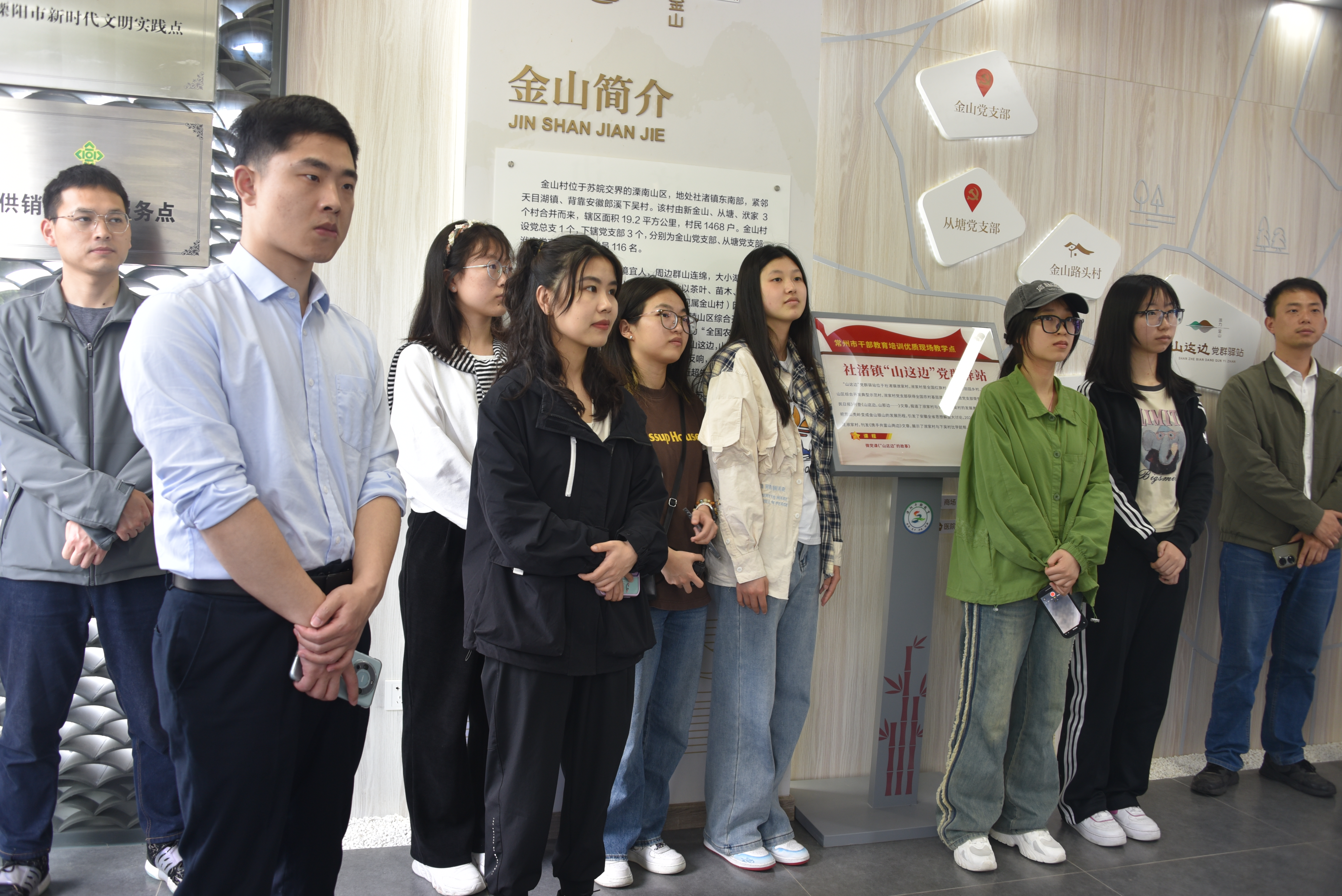团员青年一行赴洑家村“山这边”党群驿站,深入了解“山两边”的故事,沉浸式学习洑家村党员干部因地制宜,充分调动群众力量,创下把荒山野岭变成金山银山的伟大壮举,以创新思维和过硬技术推动乡村振兴发展的举措。