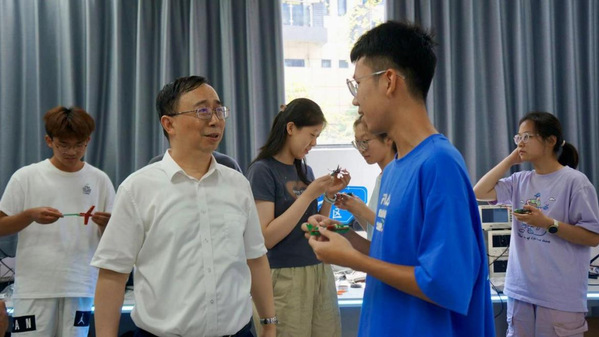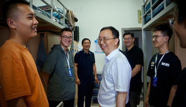 在迎新期间,校长姜斌一行来到迎新现场、网上购买双色球 科创空间与学生宿舍,关心新生报到情况并给予真挚问候。姜斌详细地了解了网上购买双色球 以“探索·筑梦”为主题开展的科创启蒙迎新活动,对同学们给予深切的鼓励。他勉励自动化学子不仅要成为高精技术的探索者,在自动化的海洋中深耕细作,更要勇于挑战传统,敢于突破常规,以创新的思维和方法推动自动化技术在航空航天领域的应用与发展,不断攀登科技高峰。