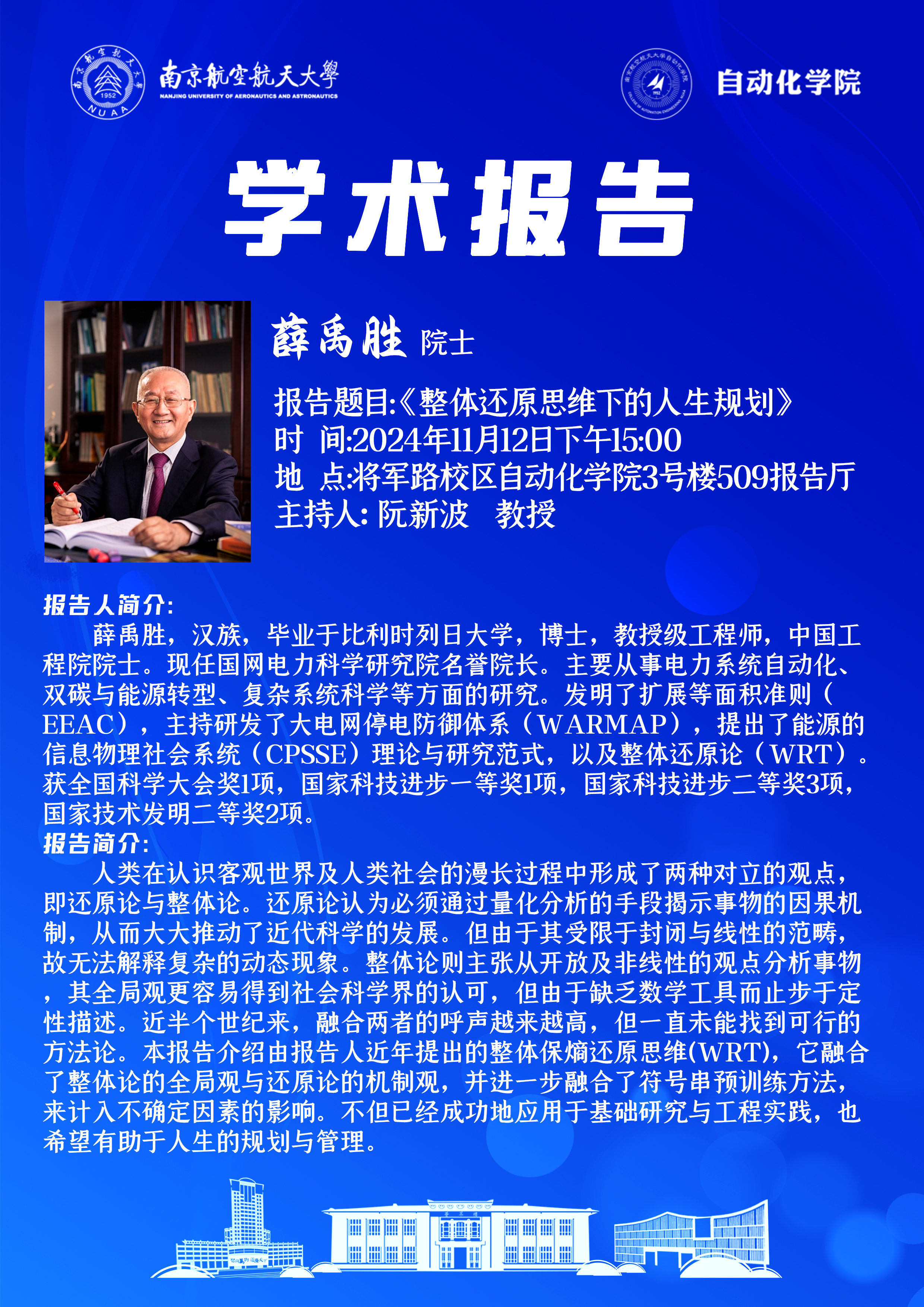 【学术报告】薛禹胜 :整体还原思维下的人生规划