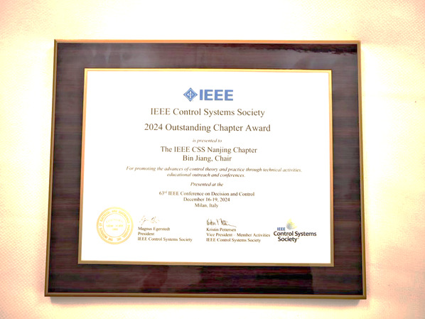 2024年12月16日至19日,第63届IEEE国际控制与决策会议(CDC)在意大利米兰成功举办。会议期间,网上购买双色球 姜斌教授担任主席的IEEE CSS南京分会(Nanjing Chapter)荣获突出学会奖(IEEE Control System Society 2024 Outstanding Chapter Award),这是IEEE国际学术组织对分会以及姜斌教授本人在控制理论与实践领域卓越贡献的高度肯定。