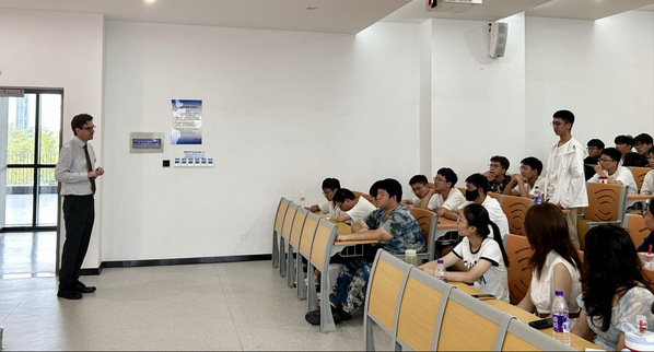 在交流互动环节中,同学们围绕学业要求、授课方式、海外生活、未来发展等方面踊跃提问,Veselin Rakocevic与Helen Yue逐一作了耐心解答,现场气氛热烈融洽。Veselin Rakocevic建议同学们在完成学业的同时,应注重自身综合素质的提升,可以利用假期和课余时间积极参与校外实习,拓宽视野、增强社会适应能力,从而更准确地把握社会对人才的实际需求。他还鼓励同学们通过社会实践发掘个人兴趣与专长,建立广泛的国际友谊。