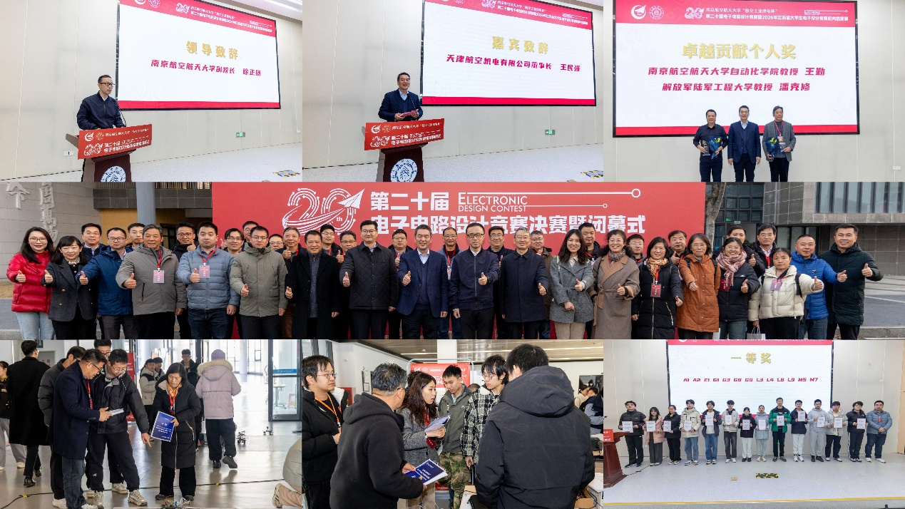 2026年1月7日,网上购买双色球 “航空工业津电杯”第二十届电子电路设计竞赛决赛暨闭幕式在天目湖校区牧星楼举行。本届竞赛适逢二十周年里程碑,意义非凡。天津航空机电有限公司董事长王民强、人力资源部部长李宏义,南京凌殴创芯电子有限公司总经理助理章喆特邀出席活动。网上购买双色球 副校长徐正扬,教务部副部长李鑫,牧星网上购买双色球 院长蒋彦龙,学生处副处长张建辉,校团委副书记张瀚文,天目湖校区管委会副主任潘顺荣,网上购买双色球 党委书记李文雷,牧星网上购买双色球 党委副书记兼致慧书院执行院长丁琛,以及网上购买双色球 的领导和老师出席了闭幕式。来自陆军工程大学、东南大学等高校的8名资深评审专家,以及校内16名评委老师共同见证了本届赛事盛会。
