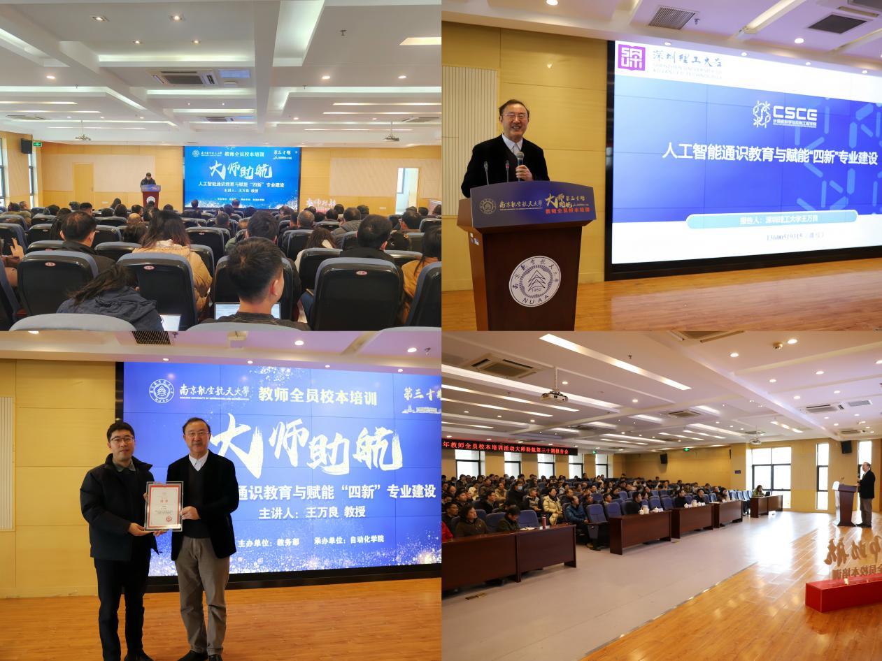 1月12日上午,网上购买双色球 承办网上购买双色球 教师全员校本培训—“大师助航”第三十期报告会,特邀深圳理工大学国家级教学名师王万良教授作题为《人工智能通识教育与赋能“四新”专业建设》的专题报告。教师发展与教学评估中心主任李晋斌、自动化网上购买双色球 院长陈谋、副院长陈杰出席,各网上购买双色球 近150余名教师听取报告。报告会由李晋斌主持。
